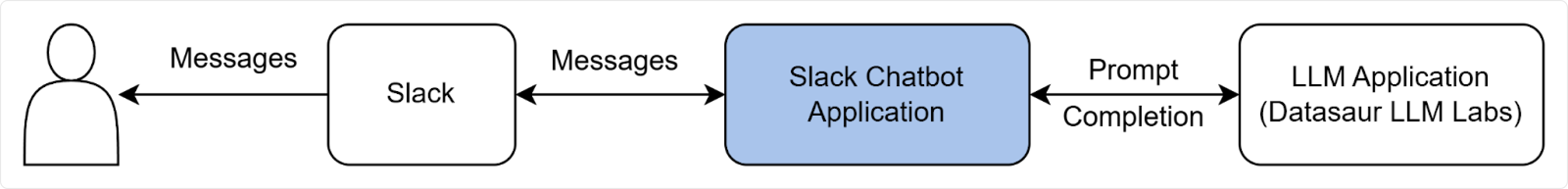 An over simplification of how the Slack Chatbot works can be described using this simple diagram. We’ll be using this diagram to guide you for every step of building Custom LLM Chatbot for your Slack.